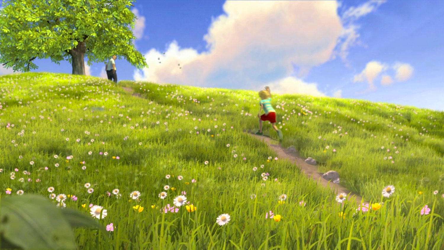 Screen capture taken from a prototype vertical slice demonstration of the in-game graphics. A mix of Pixar and Studio Ghibli.
